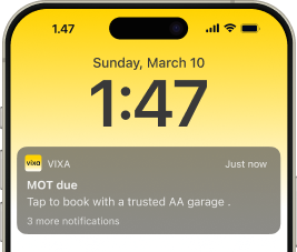 No more stressing about missing your car service or MOT deadline – Vixa tracks your car’s MOT and service schedules, sending you timely alerts so you can book in before they’re overdue.